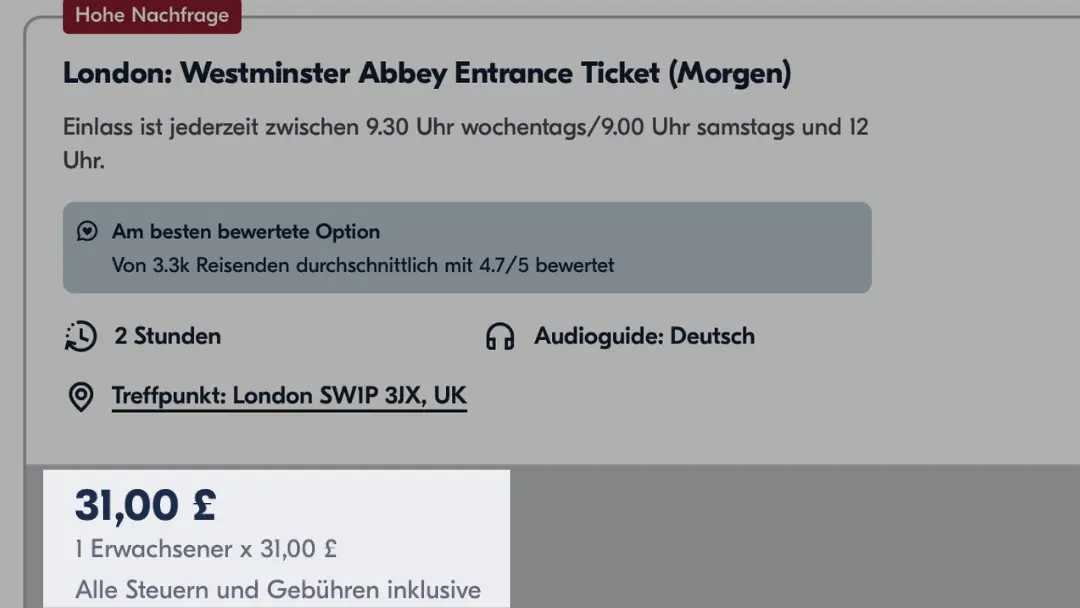 Screenshot von der Buchungsseite bei GetYourGuide (Stand: September 2025)